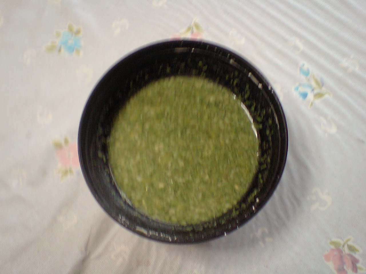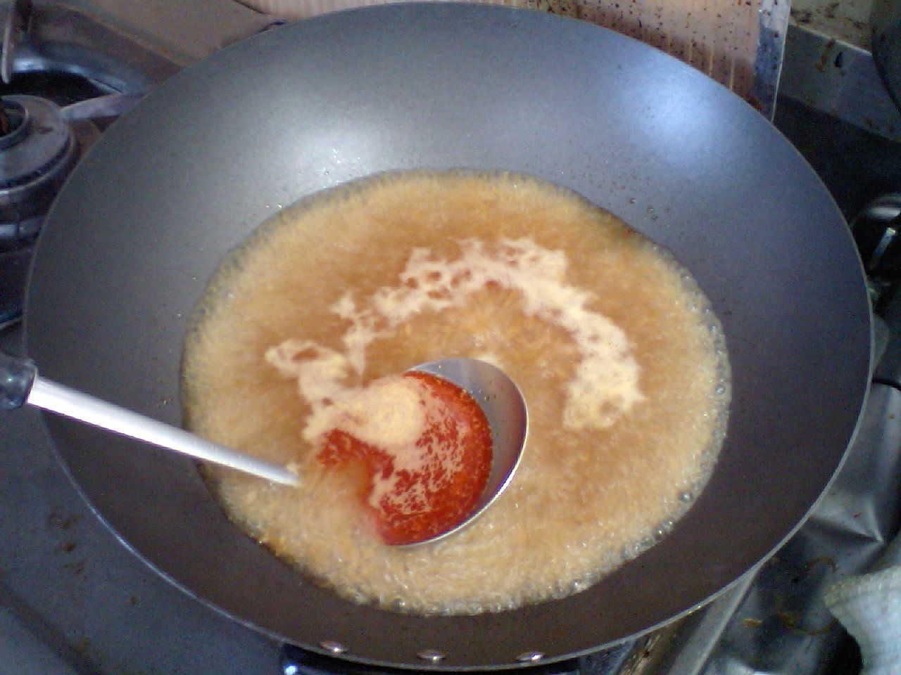 ここに先ほど摩り下ろしておいた鷹の爪をパラパラと。