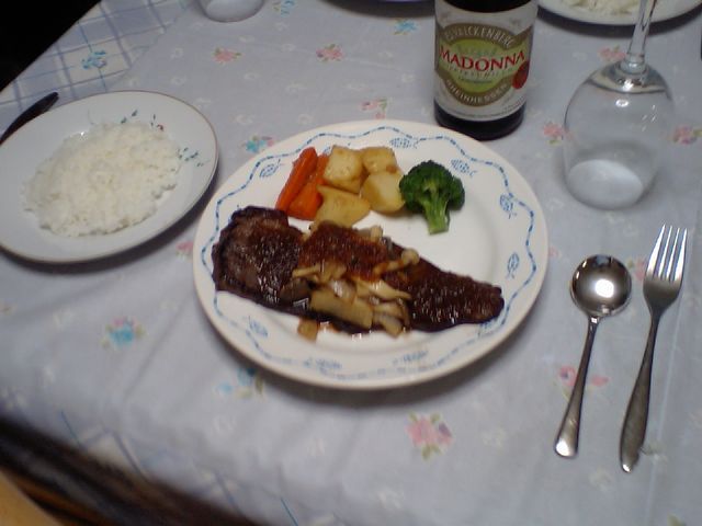 久しぶりに実家の母親が泊まりに来てたので、ステーキを焼いてみたw