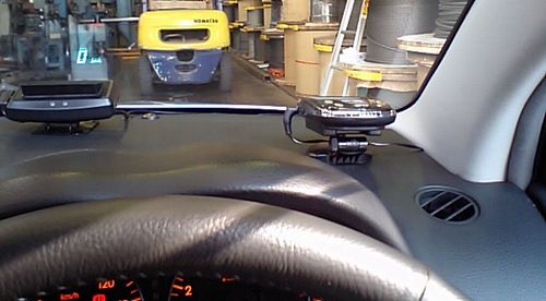 そこで、運転席側のダッシュ上に設置場所変更開始。