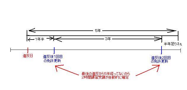 5年以内(正確には去年のゴールデンウィークが最後の違反)に違反してるので2時間講習OTZ