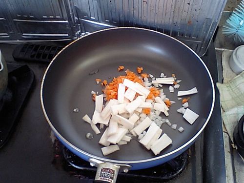 フライパンで人参・たまねぎ・エリンギを軽く炒める