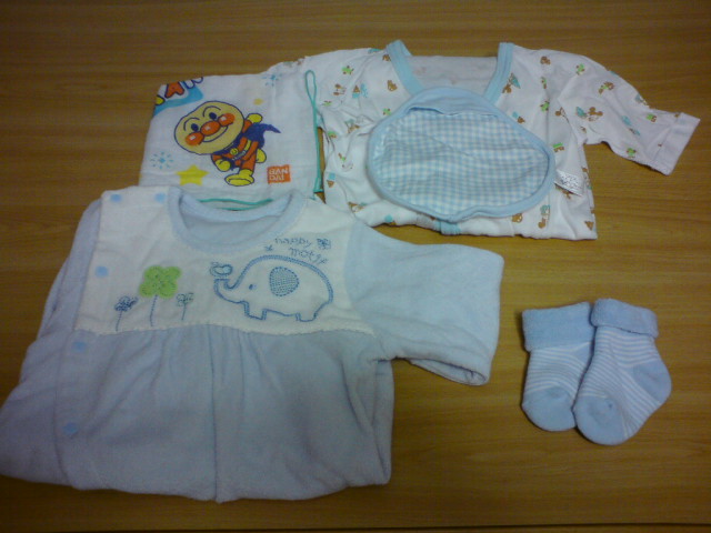ハンカチガーゼに肌着、よだれかけにカバーオール、そして右下に控えているのが靴下