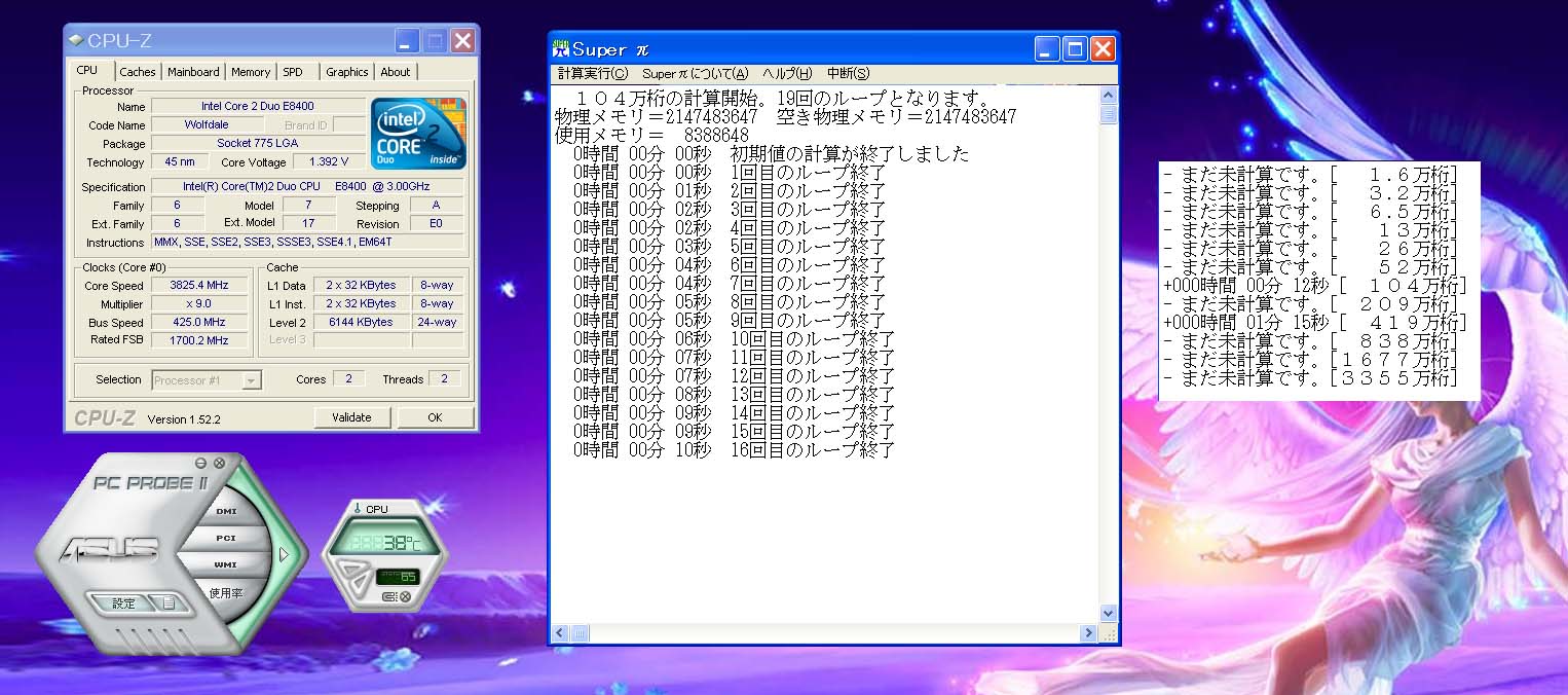 蒼’s PCに搭載しているE8400(Wolfdaleになってから)はオーバークロック耐性が強いらしくググッてみても4GHz超えで動作させている方が多いみたいです。